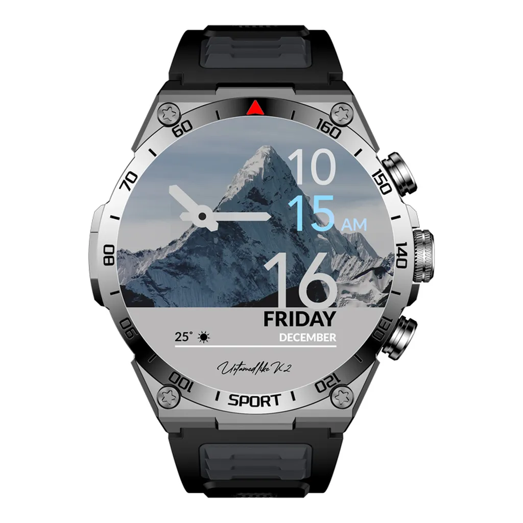 ساعت هوشمند گلوریمی مدل K2 ترکیبی از زیبایی در طراحی، مقاومت و کارایی است. ین ساعت با نمایشگر 1.6 اینچی AMOLED و روشنایی چشمگیر 1350 نیت، حتی در نور مستقیم خورشید نیز وضوح بینظیری ارائه میدهد. بدنه آن از آلیاژ روی ساخته شده و دارای سه دکمهی فلزی از جمله دکمهی چرخان برای ناوبری آسانتر است.