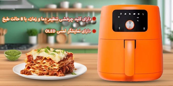 - جریان هوای ۳۶۰ درجه برای پخت یکنواخت و کاهش مصرف روغن تا ۸۰٪